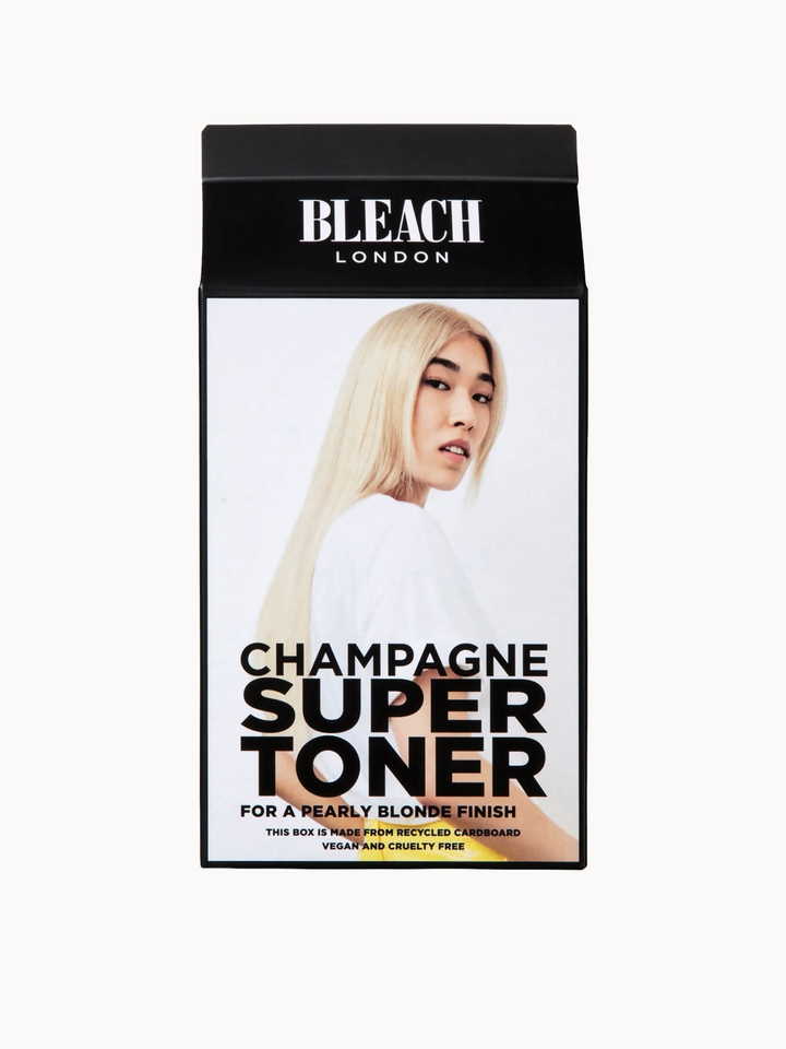 Enhance your lightened hair the BLEACH LONDON Champagne Super Toner Kit, a must-have kit for creating a sparkling blonde finish.Lasting for around 16-20 washes, the nourishing, semi-permanent champagne toner has been formulated to brighten and enhance the appearance of pre-lightened hair, giving it a lustrous, pearly finish. Comes with an instruction leaflet so you can achieve the best results at home.This Kit contains:1 x Tube of Colourant1 x Bottle of Developer Lotion (peroxide)1 x Repairing Treatment Mask1 x Pair of Plastic Gloves1 x Instruction leafletVegan.