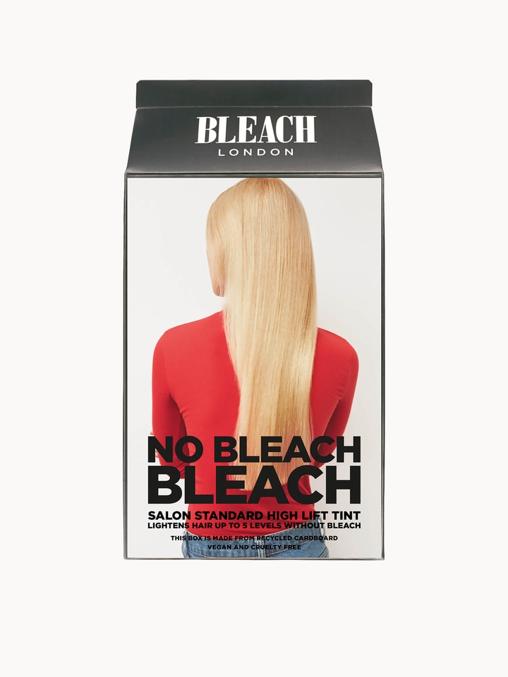 Achieve a salon-standard high lift tint with the BLEACH LONDON No Bleach Bleach Kit, a bleach-free hair-lightening kit for virgin hair.Using a persulfate-free bleach alternative for less hair damage and scalp irritation, the hair lifting kit lightens hair up to five levels to create a creamy blonde effect. Unlike traditional bleach, the colour will continue to lighten subtly over time, but roots will need topping up every 4-6 weeks for the ultimate lift look. Perfect for enhancing medium brown to medium blonde, or light brown to light blonde hair.Comes with the BLEACH LONDON Reincarnation Mask to promote optimum hair health.Not for use on hair that has been dyed or pre-lightened.Vegan.