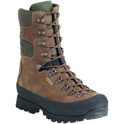 Kenetrek Men's Mountain Extreme 400g Insulated Waterproof Hunting Boots - When you're hunting Dall Sheep in the Mackenzie Mountains of the Northwest Territories, you may be surprised with six inches of snow in August. Others may wait it out in the tent, but your Extremes give you the wherewithal to continue hunting no matter what. There's nothing tougher than high altitude sheep hunts and no boot tougher and more comfortable than these. 10 inch tall 2.8mm thick premium full grain leather uppers One piece vamp construction with no seams down the tongue Reinforced double and triple stitching 7mm nylon midsoles for extra support with pack loads Boot hardware that swivels instead of breaking Reinforced rubber sole guard for extra abrasion resistance Windtex waterproof breathable flexible membrane 400g Thinsulate for warmth Lightweight K-Talon outsoles Style: KE-420-400