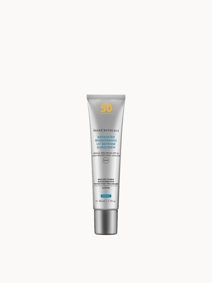 Hydrate and protect your complexion with the SkinCeuticals Advanced Brightening UV Defense SPF50 Moisturiser. The dual-action cream helps to maintain a youthful-looking complexion, combatting the effects of UV exposure. The lightweight formula provides broad spectrum, high SPF50 protection to help reduce the visible signs of ageing. The cream also helps to reduce the appearance of discolouration and age spots, promoting a more even complexion. 1% Tranexamic Acid and 2% Niacinamide help to even and balance the skin, combatting existing signs of ageing or sun damage, while UV filters help to prevent further damage. Discover a more clarified, bright and even complexion with this multi-benefit moisturiser.SkinCeuticals in-clinic treatments are available at Hale Country Club. Click to book your skin consultation and discover more about the SkinCeuticals Professional Facials and Peels available.