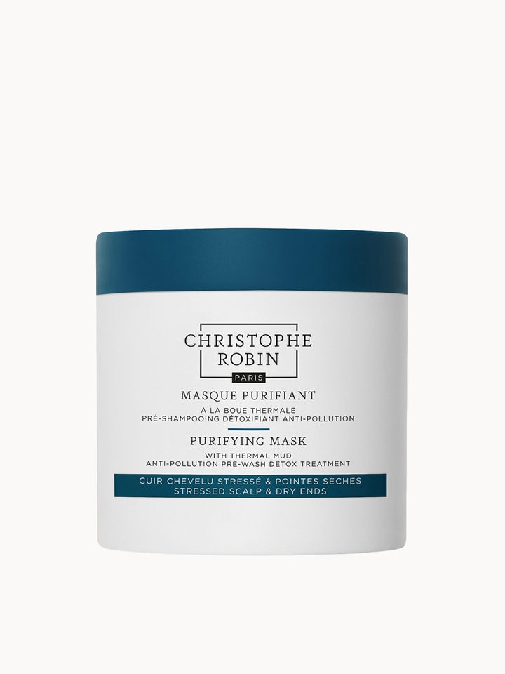 Ideal for stressed-out scalps and dry hair, the Christophe Robin Purifying Mask with Thermal Mud is a weekly pre-wash hair mask formulated to detoxify and refresh. The purifying treatment works to draw out the build-up of impurities, while enhancing hair’s moisture.Fortified with mineral-rich thermal mud, the formula helps to balance the scalp in order to minimise the look of oily, greasy roots. Spirulina, a nutrient-rich algae, supports the scalp's natural barrier function, helping to shield it from pollution.Designed to be used weekly before shampooing, the hair mask acts as the first step in promoting healthy-looking hair and a comfortably refreshed scalp.