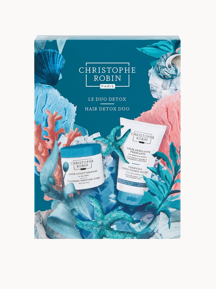 Harnessing the hair-loving goodness of marine actives, Christophe Robin’s Hair Detox Duo stars sea salt and minerals to cleanse and purify the scalp and strands. Set Contents: Cleansing Purifying Scrub with Sea Salt 40ml A mineral-rich scrub that buffs away dead skin cells, product build-up and excess oils from the scalp. Purifying Conditioner Gelée with Sea Minerals 75ml Encouraging a smoother, sleeker finish, this creamy conditioning gelée helps to detangle and soften the mid-lengths and ends while hydrating and nourishing.