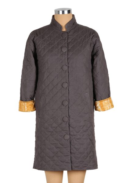 When the wind gets chilly, reach for this stylish layering jacket. The three-quarter length design features a lightly-quilted diamond pattern in go-with-everything grey with a mustard and white contrast lining. Side seam pockets and oversized...