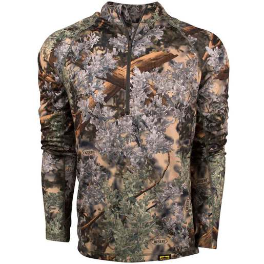 Kings Camo Men's Desert Shadow XKG Elevation Long Sleeve Hunting Shirt - This is the lightest long sleeve synthetic shirt in the XKG Series. Two-way 100% polyester stretch mesh fabric Odor control technology Highly breathable Extended back length Flatlock stitched seams Sleeve thumbholes 1/4 zip for venting Shirt weight: 9.7oz Style: XKG4206