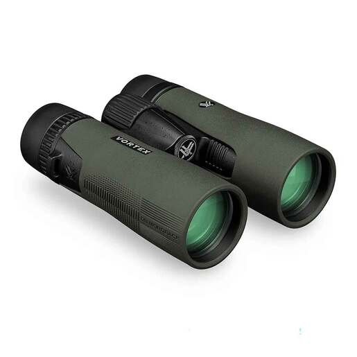 Vortex Diamondback HD Full-Size Binoculars - 10x42 - Optimized with select glass elements to deliver exceptional resolution, cut chromatic aberration and provide outstanding color fidelity, edge-to-edge sharpness and light transmission. Fully Multi-Coated increases light transmission with multiple anti-reflective coatings on all air-to-glass surfaces. Multi-layer prism coatings provides bright, clear, color-accurate images. Rubber Armor provides a secure, non-slip grip, and durable external protection. O-ring seals prevent moisture, dust and debris from penetrating the binocular for reliable performance in all environments. Argon gas purging prevents internal fogging over a wide range of temperatures. Shockproof: Rugged construction withstands recoil and impact Adjustable Eyecups: Twist up and down for comfortable viewing with or without eyeglasses Center Focus Wheel: Adjusts the focus of both binocular barrels at the same time Diopter: Adjusts for differences in a user's eyes. Located on right eyepiece Incldued in the box: Vortex Diamondback HD Binoculars GlassPak binocular case GlassPak case harness Comfort neck strap Tethered objective lens covers Rainguard Eyepiece Cover Lens Cloth