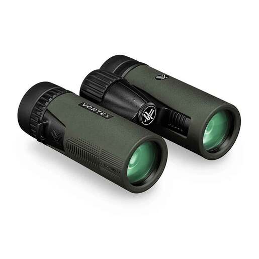 Vortex Diamondback Compact Binoculars - 10x32 - Optimized with select glass elements to deliver exceptional resolution, cut chromatic aberration and provide outstanding color fidelity, edge-to-edge sharpness and light transmission. Fully Multi-Coated increases light transmission with multiple anti-reflective coatings on all air-to-glass surfaces. Multi-layer prism coatings provide bright, clear, color-accurate images. Rubber Armor provides a secure, non-slip grip, and durable external protection. O-ring seals prevent moisture, dust and debris from penetrating the binocular for reliable performance in all environments. Argon gas purging prevents internal fogging over a wide range of temperatures. Shockproof: Rugged construction withstands recoil and impact Adjustable Eyecups: Twist up and down for comfortable viewing with or without eyeglasses Center Focus Wheel: Adjusts the focus of both binocular barrels at the same time Diopter: Adjusts for differences in a user's eyes. Located on right eyepiece Package includes: Deluxe carry case, Deluxe carry case strap, Comfort neck strap, Tethered objective lens covers, Rainguard Eyepiece Cover, Lens Cloth