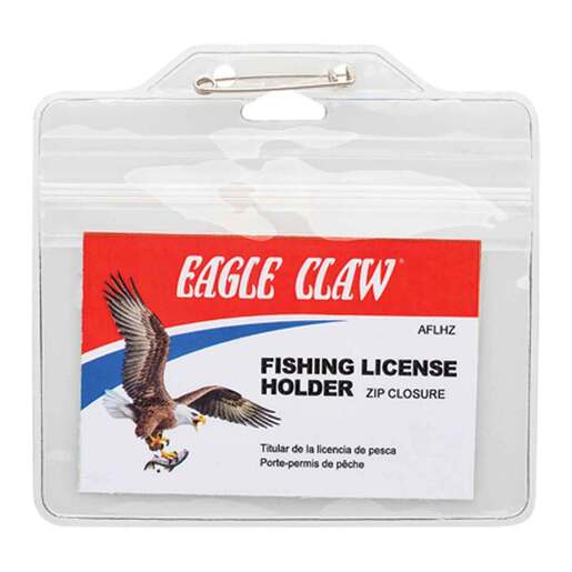 Eagle Claw Fishing License Holder With Zip Closure - This fishing license holder zips up to keep your fishing license clean and dry. The holder is clear so the license can be seen. The included safety pin allows the holder to be pinned to clothing or other materials.