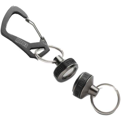 Rapala Magnetic Release Clip Fishing Tool - An essential tool for every fisherman! Carabiner clip to connect to person Tough connecting magnets holds both ends together when stored. Will break free when pulled allowing cord free handling of attached device. Heavy Duty Split Ring for tool attachment