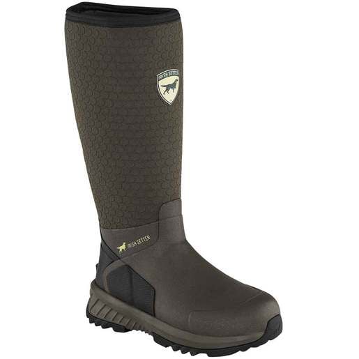 Irish Setter Men's MudTrek Uninsulated Waterproof Hunting Boots - Irish Setter MudTrek rubber boots are the lightest rubber boots in the brand’s history, and they’re among the lightest on the market today. MudTrek boots are made to fit. Features TempSense technology helps regulate the temperature within the boots. In hot conditions, the system reacts so moisture is hyper-wicked away from the foot, facilitating evaporative cooling. This helps keep feet cooler, drier and more comfortable. In colder conditions, the system also pulls moisture from the skin, but traps it to create a thermal barrier that helps maintain a constant, comfortable temperature inside the boots. Traditional, roomier full fit. Unisex sizing ScentBan antimicrobial scent control helps eliminates odors within the boot 7mm neoprene/rubber upper Waterproof A convenient heel kick aids boot removal 3D fleece linings provide warmth and facilitate airflow through the lining Polyurethane footbed and lightweight RPM midsole provide long-lasting, all-day underfoot comfort Aggressive Rubber Mudder sole which provides superb stability and traction on the toughest terrain Self-cleaning lugs help remove mud and dirt with every step Height: 17in Style: 4855