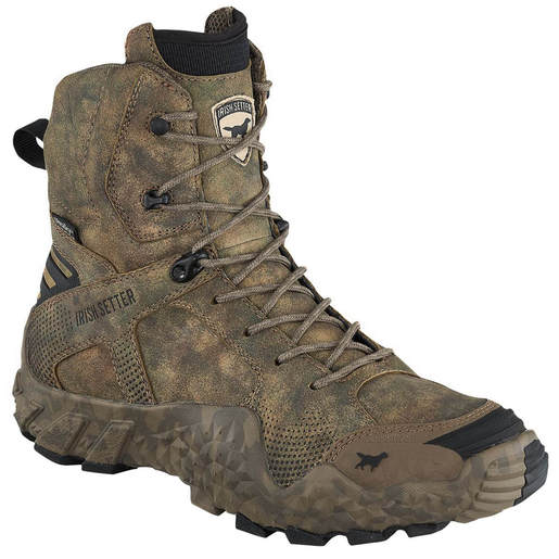 Irish Setter Men's Vaprtrek Uninsulated Waterproof Hunting Boots - Track down big game all day with these comfortable, fully equipped boots. UltraDry waterproofing system Irish Setter's Exclusive ScentBan scent control ArmaTec delivers extremely durable layer of extra protection placed in high wear areas Energ strategically placed high rebound materials brings high end athletic shoe technology bringing a recharging burst of energy with every step RPM reduces the weight of the boots Trout Brook Leather upper CuShin Comfort tongue minimizes pressure some hunters feel on their shins from the top of boot tongue Four way stretch Nylon offers relief and flexibility while walking Internal padded waffle mesh maintains premium comfort Height: 8in Cement construction Removable Polyurethan with memory foam footbed Nylon shank RPM R-Zone Outsole Synthetic Mesh lining Style: 2815