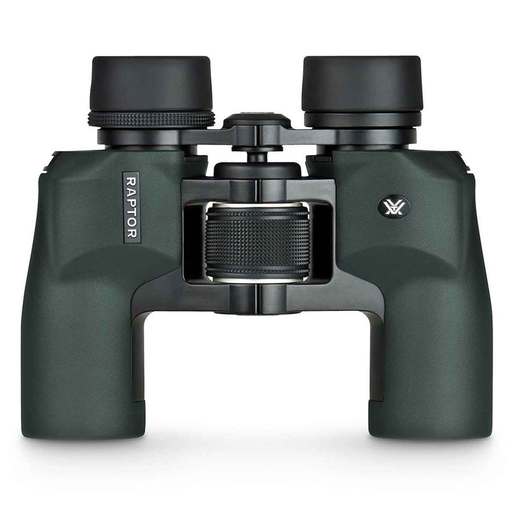 Vortex Raptor Compact Binoculars - 8.5x32 - Porro prism performance in a mid-size, wide-angle design, Raptor binoculars offer bright, crisp images with excellent color fidelity, even in low-light conditions. The design accommodates a wide range of interpupillary distances to fit everyone in the family. Fully Multi-Coated: Increase light transmission with multiple anti-reflective coatings on all air-to-glass surfaces Porro Prism: Valued for a rich depth of field, wide field of view, and three-dimensional image Waterproof: O-ring seals prevent moisture, dust and debris from penetrating the binocular for reliable performance in all environments Fogproof: Nitrogen gas purging prevents internal fogging over a wide range of temperatures Rubber Armor: Provides a secure, non-slip grip, and durable external protection Adjustable Eyecups: Twist up and down for comfortable viewing with or without eyeglasses Center Focus Wheel: Adjusts the focus of both binocular barrels at the same time Diopter: Adjusts for differences in a user's eyes. Located on right eyepiece Includes: Rainguard Eyepiece Cover, Tethered objective lens covers, Comfort neck strap, Soft carry case