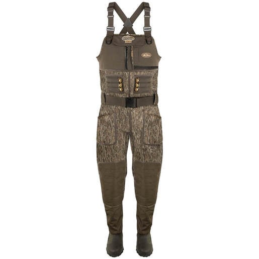 Drake Men's Buckshot Eqwader 3.0 Bootfoot Hunting Wader - Designed to be the most dependable neoprene wader on the market. They took their construction above and beyond the competition and covered all external seams with a unique liquid seam weld and all internal seams with extra wide waterproof seam seal tape. Waterfowl hunters are exposed to the worst elements day-in and day-out. So aren't all seams on a wader critical? 5mm neoprene Fleece lined 1600g Thinsulate Buckshot Mudder Boots Higher sides High ground pockets HD2 Hydro-Flex knees DryFuse seam technology No-Buckle shoulder straps High & Dry security pouch with waterproof zipper Large front cargo pouch with Magnattach Vertical call pocket with Magnattach License/Key pocket with waterproof zipper Horizontal shell loops Against-The-Body Handwarmer Style: DF8500