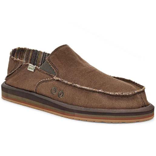 Sanuk Men's Vagabond ST Hemp Casual Shoes - How do you make an award-winning Sidewalk Surfer even greater? Create a kick-down, collapsible heel, for starters. A sleeker silhouette helps. Hemp blend uppers lined with fuzzy blankets? Yep. And the real kicker—add the softest, most cushiest, bounciest high-rebound Soft Top Foam midsoles you’ve ever felt. Vagabond ST Hemp is here to take over the slip-on game…again. 50% Hemp/50% Cotton upper Exposed gore, Frayed edges, Step down counter Blanket canvas lining Molded EVA footbed, Antimicrobial additive High rebound soft top foam Blown rubber outsole, 47% Recycled EVA Foam, 6% Straw & 47% virgin rubber outsole 100% GRS Certified RPET Sanuk Flag Woven Label Sustainability Initiative(s): Hemp, Recycled materials Packable Style: 1117753
