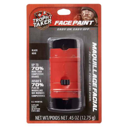 Trophy Taker Black Face Paint - Blend into your environment better with the best Face Paint System on the market! Trophy Taker and market researchers have discovered the essential colors hunters demand to be successful in the field. This easy application gets you prepped and ready in no time! Up To 70% More Face Paint Than Competing Brands Easy To Remove From Skin, No Residue Left Behind Hypoallergenic, Even For Sensitive Skin FDA And EU Colorant Approvals Size: .45 Ounces Black Color