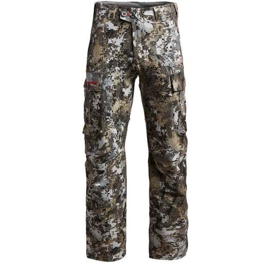 Sitka Equinox Pant - Ideal for the whitetail hunter who needs breathable comfort for both the approach and the sit. A low bulk waistband design and reduction in weight ensures you hunt in comfort and new features include a dedicated knife sheath, and waterproof seat so you can soak up the hunt, not the morning dew. Waterproof seat eliminates discomfort on early morning sits in a wet stand GORE OPTIFADE concealment Elevated II is designed for whitetail hunters in an elevated position Durable Water Repellent finish resists light precipitation and prevents the face fabric from wetting out Cargo pockets and zippered security pocket for quick, quiet access to stowed essentials Woven 4-way stretch polyester fabric Dedicated knife sheath Style: 50261-EV