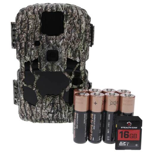Stealth Cam Prevue 26 Combo Trail Camera - The Prevue 26 Combo Kit includes 8 AA batteries and a 16GB SD card to get you up and running with your new trail camera. The Prevue 26 features a 26 megapixel camera, a temperature sensor, and a color TFT screen for viewing captured images and videos. 26 Megapixel & 720P Video At 30FPS Trigger Speed 0.4 Seconds Video Resolutions (720) Image Resolutions (26MP/16MP/8MP/4MP) 2.4in Color TFT Screen 26PCS 850NM LEDs 80FT Detection & IR Range Burst Mode 1-6 Images Per Triggering 120/60/30/15/5 Second Recovery Time Time / Date / Moon Phase SD Card Slot Up To 32GB Integrated Python Lock Latch Temperature Sensor Capture Playback – View Images & Videos External Power Jack For SOLPAK Solar Battery Back (Sold Separately) Operates On 8 AA Batteries (Included) 16GB SD Card Included