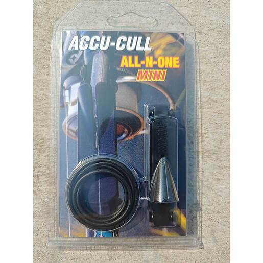 Accu-Cull All-N-One Mini Fishing Tool Kit - Hold a hook, punch weight, or Texas Rig...No more rehooking bait! Mounts anywhere along your rod. 4 O-ring sizes to fit most rods. Holds line in place. No more line rubbing or kinks.