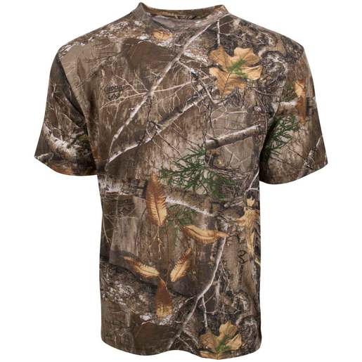 Kings Camo Men's Realtree Edge Classic Cotton Short-Sleeve Hunting Shirt - Enjoy the comfort of this camo tee. Cotton Poly 60/40 blend Tagless label for total comfort Left chest pocket Rib knit collar Style: KCB103