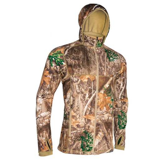 Kings Camo Men's Realtree Edge XKG Pinnacle Hunting Jacket - The XKG Pinnacle Jacket is a warm technical mid-layer functional for everyday of the season. Stretch fabric increases comfort with a design facilitating full range of motion. Fitted hood provides comfort while strategically placed seams reduces friction points. Polygiene Odor Control Technology Left Chest Pocket Sleeve Thumbholes Raised Collar Flatlocked Stitched Seams Body Mapping Fleece 400GSM body/320GSM Sleeve weight Style: XKG4216