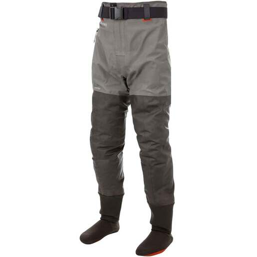 Simms Men's G3 Guide Stockingfoot Wading Pants - For active missions where a full wader seems over-the-top, G3 Guide Pants keep you in the mix and comfortably on the move. Rock-hopping mobility makes them a mountain stream staple. And rugged Gore-Tex waterproof breathability means they outlast the elements — so you can embrace yours. Updated material lamination package with even more durable, breathable, and comfortable GORE-TEX 3-layer upper and 4-layer lower Double snap closure with TIZIP waterproof fly zipper Built-in low-profile belt loops with 2 inch stretch wading belt included Waterproof-submersible hand pocket with TRU Zip Zipper keeps critical gear and accessories protected Patented front and back seams deliver articulated fit, improved mobility, and increased durability patented abrasion-resistant built-in Gravel Guards Anatomically engineered neoprene stockingfeet with anti-microbial finish Made in the USA Style: 13597 If your SIMMS product fails due to a defect in workmanship or materials, SIMMS will repair or replace your gear and get you back on the water as soon as possible. If your SIMMS product fails due to excessive wear, accidents involving barbed wire or campfires, or the natural breakdown of materials over extended time, SIMMS will make every effort to repair your gear for a reasonable fee.
