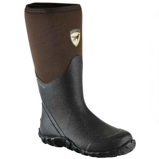 Irish Setter MudTrek Wide 15in Uninsulated Waterproof Hunting Boots - Whether you are hunting, farming, ranching or you just can't wait to get outside on mucky trails, these waterproof boots deliver superior traction and comfort. Durable rubber and a 5mm neoprene upper deliver a lightweight boot that keeps your feet dry all day long. Exclusive scent control, ScentBan added to kill odor causing bacteria TempSens technology reacts to your body's temperature, keeping you cool when youre hot and retaining body heat when it gets too cold Vulcacnized Rubber-5mm Neoprene for full waterproofness Removable Polyurethane footbed Nylon lining 15in height MudTrek Chore outsole provides superior traction on slippery and uneven terrain Style: 4839