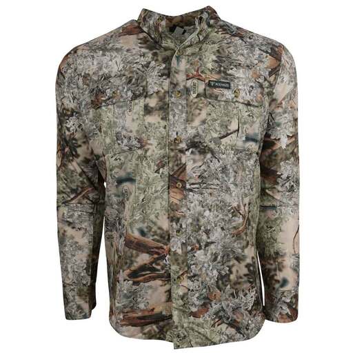 Kings Camo Men's Desert Shadow Safari Long Sleeve Hunting Shirt - The Hunter Series Safari Shirt was developed for warm weather hunts where sun protection, breathability, and concealment equals success. 100% Polyester Quick drying micro ripstop fabric 2 streamlined chest pockets Vented back Button down collar High sun protection rating Style: KCM1606-DS