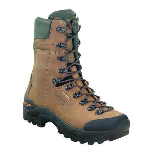 Kenetrek Men's Guide Ultra Insulated Waterproof Hunting Boots - Whether you're challenged with ankle issues or just need something stiffer that's waterproof and moves from snow to rocky terrain in total comfort - look no further. 10in tall 2.8mm thick premium full grain leather upper One piece vamp construction with no seams down the tongue for abrasion resistance and waterproofness EverStep technology to give you an ultra-support system, double durability and the all-day comfort Reinforced double and triple stitching in high wear areas 7mm nylon midsoles for extra support with heavy pack loads Anti-corrosion boot hardware that swivels instead of breaking Removable brace system to the uppers of Kenetrek's classic Guide Boot paired it with a one-piece, deep lug traction, super-stable K-73 outsole Reinforced rubber sole guard for extra abrasion resistance 400g Thinsulate insulation for warmth without the bulk Windtex waterproof breathable flexible membrane EverStep removable nylon braces provide additional ankle support for heavy pack loads in rough terrain 4.8lbs Style: ES-425-OP4