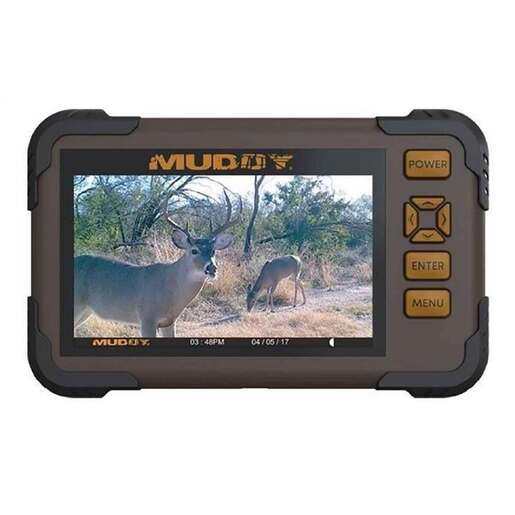 Muddy CRV43 HD SD Card Viewer - Easily view SD card images on the go with this high definition SD card viewer featuring 1080P video playback in a durable water resistant housing. Features: 1080P Video Playback 4.3in Color LCD Screen View Images and Videos Intuitive Menu Operation Headphone Jack for Audio Adjustable Brightness & Volume Manage images with ViewithTransfer/Delete options Durable water resistant housing Wrist Lanyard Micro USB Slot SD Card slot up to 32GB Operates on 4 AA batteries