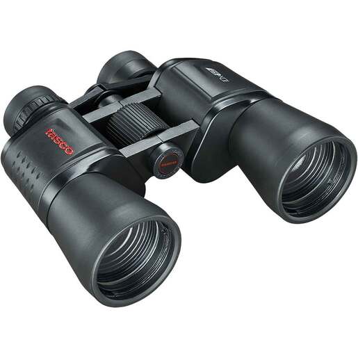 Tasco Essentials Full-Size Binocular 10 x 50mm - The porro prism design, large 50mm objective lenses and multiple lens coatings all provide a bright and clear image with great contrast in all viewing conditions. The black rubber grips and chassis give these binoculars a classic look. The center focus wheel is fast while also giving you the precision of pinpoint focus accuracy. They also feature mounting points for neckstraps and harnesses for comfort and convenience. If you're looking for affordable power, the Essentials 10x50 binoculars deliver.