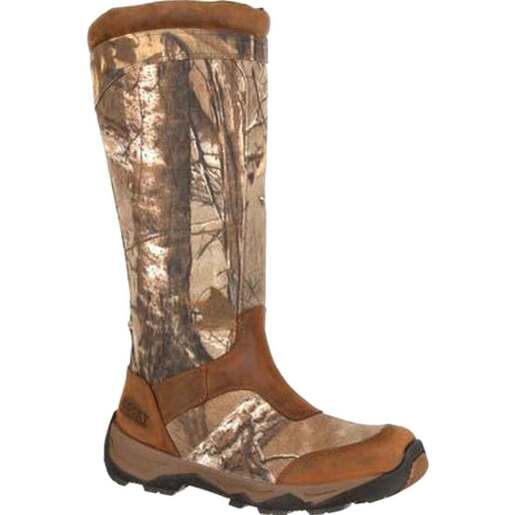 Rocky Men's Retraction Side Zip Waterproof Hunting Snake Boots - Waterproof, comfortable, and durable, this boot protects you from most bites from venemous snakes inhabiting North America. Moisture-wicking lining Guaranteed Rocky Waterproof construction Rubber outsole Nylon shank 17in boot height 1/2in heel height 20in calf circumfrerence Strobel/cement construction EnergyBed footbed featuring memory foam Snakeguard material Style: RKS0243
