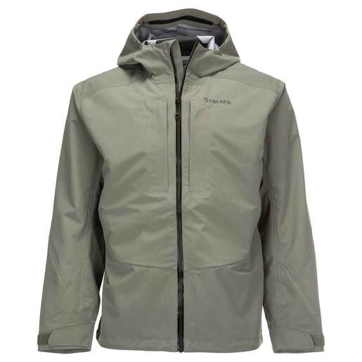 Simms Men's Freestone Waterproof Wading Jacket - Simms' waterproof-breathable Freestone Wading Jacket brings versatility to any adventure with a motion enhancing cut, ample pockets for storage and a full-time hood. 3-layer Toray laminate for waterproof and breathable protection Single point adjustable storm hood with high collar and bonded brim to shed rain YKK water-resistant front zupper with storm flap Waist-high zippered hand warmer pockets with micro brushed tricot liner and drain holes Interior stretch-woven zippered chest pocket and adjustable stretch drawcord at hem for secure fit Articulated sleeve construction for maximum movement secured with hook and loop cuff to keep water out 850.5g Style: 13156