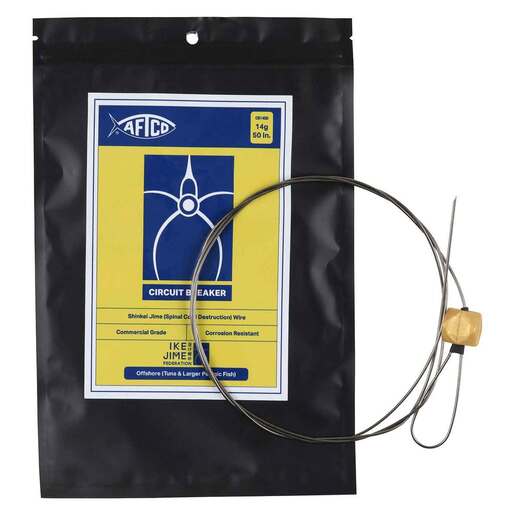 Aftco Circuit Breaker Ike Jime Kit Fishing Tool - Ike jime is central to Japanese standards for the highest quality seafood in the world. Scientifically proven to improve the smell, texture, and flavor of harvested fish, ike jime starts by spiking the fish’s brain and draining the fish’s blood. Paralyzing the fish by destroying the spinal cord (shinkei jime) elevates the quality further. Until now, professional ike jime tools have been unavailable in the West.The Circuit Breaker is specially designed to destroy the full length of a fish’s spinal cord and paralyze the fish completely. The memory-resistant wire will not bend or kink even after repeated use. It is lightweight, portable, and single-stranded for easy sterilization. Available in a variety of gauges and lengths. Shinkei Jime (Spinal Cord Destruction) wire Commercial grade wire Corrosion resistant