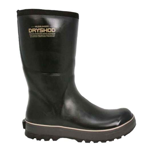 Dryshod Men's Mudslinger Premium Waterproof Hunting Boots - Premium Rubber Farm Boots – WIXIT LiningWaterproof protection from muddy, messy terrain with WIXIT Cool-Clad wicking airmesh lining for all-day comfort. Premium non-marking natural-rubber outsole infused with long-lasting Sulfadex rubber conditioner Self-cleaning tread design resists build-up of mud, dirt, grit and gravel Exceptional traction and performance on a variety of indoor/outdoor surfaces Five-layer chemical-resistant vulcanized outer shell with reinforced toe, instep, heel pocket and perimeter foxing Fully seam-sealed neoprene bootie construction with oil-resistant/slip-resistant rubber formula Rigid heel kick for easy on/off convenience WIXIT Cool-Clad wicking airmesh lining with added micro-dot perforations. Wicks away moisture and allows the air to flow more than traditional airmesh. Keeps the foot cooler in warmer temperatures Steel shank for added arch support 100% Waterproof Style: MDG-MH