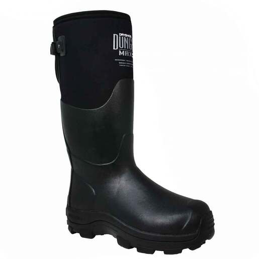 Dryshod Men's DungHo Max Gusset Barnyard Waterproof Hunting Boots - Cold Conditions Barnyard Boot. Just as tough as the original DungHo with added fleece lining for warmth and adjustable gusset for big calf comfort. DS1 molded outsole for grip on rugged terrain 6 layers of insulating warmth and protection EVA cold-blocking midsole 5.5mm bootie; 2.5mm DENSOPRENE XD foam (extreme density) for extra protection; 2mm airmesh; 2mm warm fleece lining Removable molded EVA sockliner Adjustable Gusset Style Double achilles heel and instep reinforcement for comfort and protection Nylon shank 100% Waterproof Style: DHMG-MH