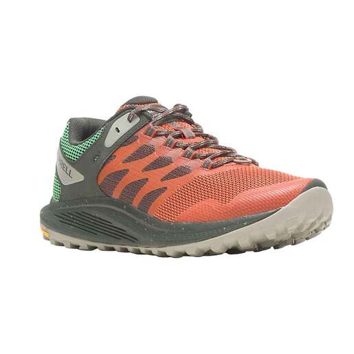 Merrell Men's Nova 3 Low Trail Running Shoes - The Nova 3 updates will ensure you’re comfortable and capable when you make your miles wild on trail. Breathable mesh and TPU upper 100% recycled laces and webbing Padded collar External rear sling locks in the heel 100% recycled breathable mesh lining 100% recycled mesh footbed cover Cleansport NXT treated for natural odor control 50% recycled removable EVA foam footbed Rock plate for protection Forefoot and heel cushioning pods Super Rebound Compound midsole provides durable shock absorption Vibram TC5+ outsole provides exceptional traction for outdoor multi-sport activities 590g (full pair) Style: J067601