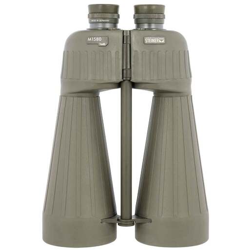 Steiner M1580 Full-Size Binoculars - 15x80 - The Steiner M1580 is for visual efficiency, extended-viewing comfort and object detail. The massive 80mm objective lenses and unmatched Steiner quality deliver far superior low-light performance and image acuity for artillery teams, SEAL missions, surveillance missions, air traffic controllers, forest fighters and naval patrols. Floating Prism System uses flexible silicone lens mount to absorb severe shock, impact and abuse without damage, Multi-Coated Optics are state-of-art for brighter picture, higher contrast and sharply contoured images with natural color definition, Sports-Auto Focus System lets you focus each eyepiece to your vision once, then keeps images razor sharp from 20 yards to infinity, Makrolon housing is durable polycarbonate with NBR Long Life rubber armoring, creating a lightweight, rugged chassis that withstands 11 Gs of impact. Includes tripod mount, neck strap, objective cover and rain protection cap.