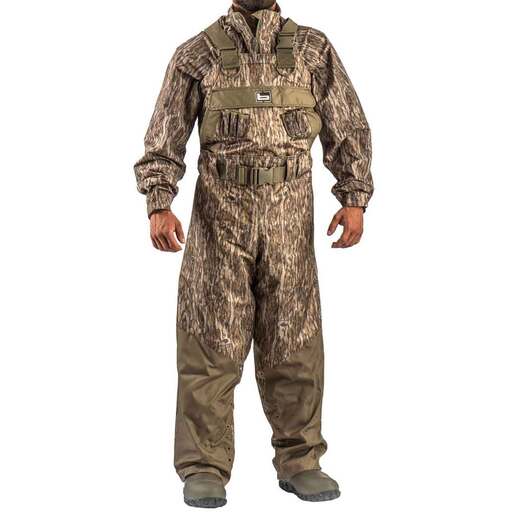 Banded Men's Bottomland RedZone 3.0 Breathable Insulated Bootfoot Hunting Wader - The Banded RedZone 3.0 insulated waders are the most technologically advanced waders in waterfowl. And, it’s not even close. Featuring the latest in cutting-edge fabric and seam technologies and improvements from top-to-bottom. You're in for the best wading experience of your life. RZ-CLINCHFIT STRAP SYSTEM with over-the-boot, removable protective pant Easy-to-use built-in belt system Reconfigured anatomical seam New, welded crotch design RZ-TRACTION Boot is anatomically molded to match foot movement with a unique deep-fluted traction GO3-LAYER fabric construction SHEDS Waterproof Breathable Technology HARS Insulation Technology 1600g Thinsulate Insulated Boot Mobility-enhancing articulated knee design Designated area for custom embroidering Fleece-lined hand-warmer chest pocket Internal flip-up device pocket allows touch screen use while enclosed 900D Reinforced Knee Six easy grab shell loops on the chest Adjustable suspenders and belt for adaptability Insulated Wader Comfort Rating: -10 F to 50F Degrees Style: B1100040