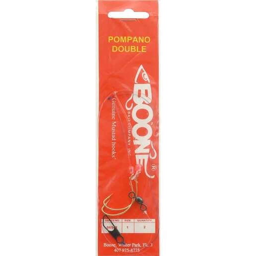 Boone Pro Pompano Double Saltwater Rig - This rig comes with two super sharp saltwater hooks rigged to entice pompano. Mono leader, black swivels and red beads.