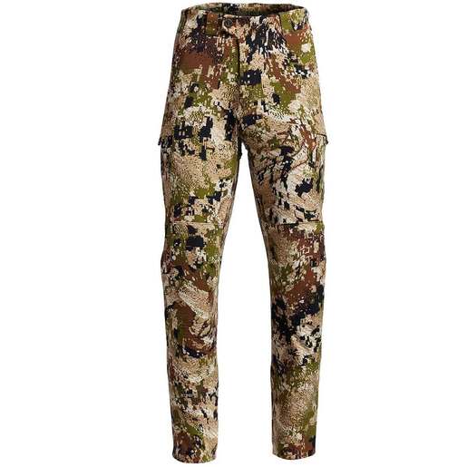 Sitka Intercept Pant - The Intercept Pant delivers the ultimate in sound, scent, and sight suppression to help you get closer when spot-and-stalk bowhunting. The bonded merino wool-blend lining manages moisture and resists odor to keep smell to a minimum, and it regulates temperature for comfort through stop-and-go activity levels. Then Sitka added a tough nylon face to make it durable enough to handle long crawls over rocky, brush-covered ground. Stretch nylon face for increased durability Bonded poly/wool backer manages odor and moisture Removable D3O knee pads offers execeptional impact protection and breathability while crawling Zippered hip vents for ventilation Integrated mesh cargo pockets with silent snaps Mesh hand pockets provide additional ventilation Total weight: 590g Style: 600164-SA