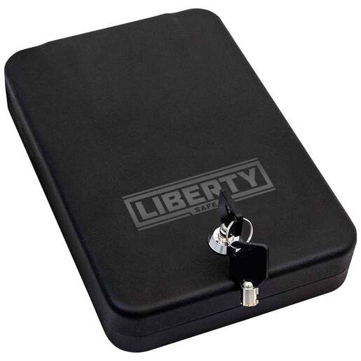 Liberty Safes HDV-50 1 Gun Pistol Vault - Matte Black - Liberty introduces its most compact handgun key vault at a very affordable price. Imported with exact specifications, the HDV-50 Key Vault protects handguns, phones, wallets, passports, medications, and other small valuables. The HDV-50 is one tough handgun vault yet conveniently portable! Each portable safe box comes with quick and reliable key access and includes a security cable for additional lockdown security. Liberty engineers have designed extra anti-pry features into this key-vault design, adding to its security. The HDV-50 is perfect for concealment underneath vehicle seats, desk drawers, nightstands, closet shelves, etc. It is even TSA-compatible for airline use. Liberty is known for the quality of its handgun vaults and stands behind our vaults by offering a 2-YEAR replacement warranty on any defects. Sturdy Steel Construction (16 ga.) Pry Resistant, Reinforced Seams Secure Cylinder Key Access Security Cable Included Foam Lined Interior Reinforced, Interior Hinge Dual-contact, Interlocking Latch System Top Opening Door CA DOJ Approved