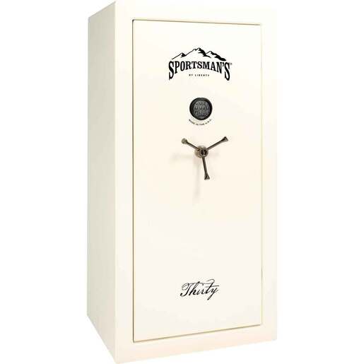Sportsman's 30 Gun Safe by Liberty - White Gloss - Introducing the NEW Sportsman’s Series Gun Safes by Liberty Safe. A Sportsman’s Warehouse exclusive; the Sportsman’s Series comes in 3 different sizes – 30, 36, and 48-gun (firearm dependent). Each safe has 60-minutes of tested fire-protection and is equipped with Liberty’s stronger Military-style locking bars to ensure your firearms and other valuables are kept safe and secure from both fire and theft. Built with a 12-gauge steel body and 14-gauge door. Available in 4 colors, you can find the safe that best fits your style or match your favorite gun. The Series comes standard with the reliable UL-listed SecuRam top-lit electronic lock for quick and secure access and allows you to set your own combination. The 3-in-1 flex interior and installed door panel gives additional storage options including handgun storage pouches. The installed outlet allows for additional accessories to be added. Each Sportsman’s safe features Liberty’s best customer service and Lifetime Warranty. Like all Liberty’s, each safe is built with American steel and is expertly crafted in the USA. 30, 36 & 48-gun sizes 60-minutes of verified Fire-Protection Top-lit Electronic Lock, UL-approved Installed Door-panel and Outlet Kit Military-style Locking Bars Made in the USA with American Steel Lifetime Warranty