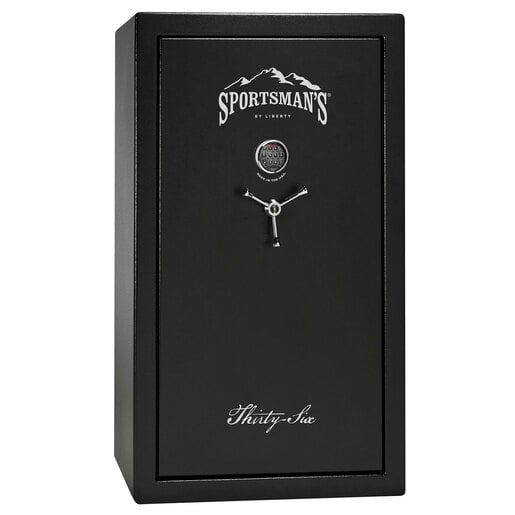 Sportsman's 36 Gun Safe by Liberty - Black Textured - Introducing the NEW Sportsman’s Series Gun Safes by Liberty Safe. A Sportsman’s Warehouse exclusive; the Sportsman’s Series comes in 3 different sizes – 30, 36, and 48-gun (firearm dependent). Each safe has 60-minutes of tested fire-protection and is equipped with Liberty’s stronger Military-style locking bars to ensure your firearms and other valuables are kept safe and secure from both fire and theft. Built with a 12-gauge steel body and 14-gauge door. Available in 4 colors, you can find the safe that best fits your style or match your favorite gun. The Series comes standard with the reliable UL-listed SecuRam top-lit electronic lock for quick and secure access and allows you to set your own combination. The 3-in-1 flex interior and installed door panel gives additional storage options including handgun storage pouches. The installed outlet allows for additional accessories to be added. Each Sportsman’s safe features Liberty’s best customer service and Lifetime Warranty. Like all Liberty’s, each safe is built with American steel and is expertly crafted in the USA. 30, 36 & 48-gun sizes 60-minutes of verified Fire-Protection Top-lit Electronic Lock, UL-approved Installed Door-panel and Outlet Kit Military-style Locking Bars Made in the USA with American Steel Lifetime Warranty