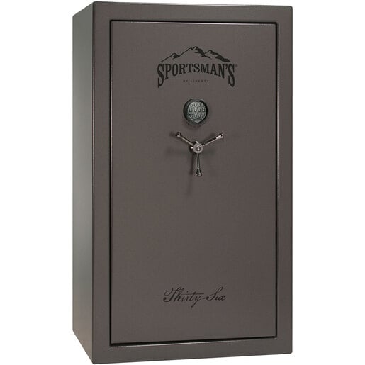 Sportsman's 36 Gun Safe by Liberty - Gray Marble - Introducing the NEW Sportsman’s Series Gun Safes by Liberty Safe. A Sportsman’s Warehouse exclusive; the Sportsman’s Series comes in a 36 gun capacity (firearm dependent). Each safe has 60-minutes of tested fire-protection and is equipped with Liberty’s stronger Military-style locking bars to ensure your firearms and other valuables are kept safe and secure from both fire and theft. Built with a 12-gauge steel body and 14-gauge door. The Series comes standard with the reliable UL-listed SecuRam top-lit electronic lock for quick and secure access and allows you to set your own combination. The 3-in-1 flex interior and installed door panel gives additional storage options including handgun storage pouches. The installed outlet allows for additional accessories to be added. Each Sportsman’s safe features Liberty’s best customer service and Lifetime Warranty. Like all Liberty’s, each safe is built with American steel and is expertly crafted in the USA. 36 gun capacity 60-minutes of verified Fire-Protection Top-lit Electronic Lock, UL-approved Installed Door-panel and Outlet Kit Military-style Locking Bars Made in the USA with American Steel Lifetime Warranty