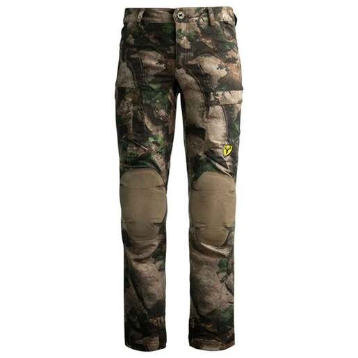 Blocker Outdoors Men's Mossy Oak Terra Outland Verse Pro Hunting Pants - When the season's first cold front comes through and the rut report starts to heat up, the Verse Hunting Pant is the go-to choice. This technical garment features Lightweight polyester double weave fabric for strength and added stretch for comfort. DWR treated to repel moisture. Reinforced seat & back heel overlays for extra protection in the field. Articulated knees for mobility and EVA foam knee pads for comfort & protection. Lightweight polyester double weave fabric for strength and added stretch for comfort DWR treated to repel moisture Six pocket design (2 waist, 2 rear, 2 cargo) Reinforced seat & back heel overlays for extra protection in the field Side seam vent zips allow for temperature regulation Articulated knees for mobility EVA foam knee pads for comfort & protection Style: 1057821