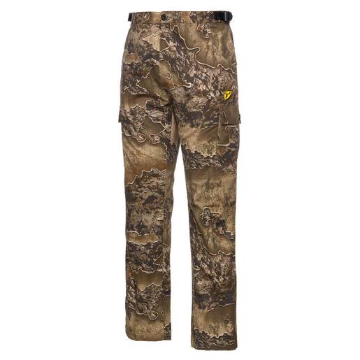 Blocker Outdoors Men's Realtree Excape Fused Ripstop Hunting Pants - The Shield Fused Cotton Ripstop pant features a lightweight yet durable ripstop poly/cotton fabric, ready to take on everything from pre-season work to seasonal hunts. Whether you choose to wear alone or as a base layer, know that this pant will deliver. Durable 60/40 cotton/poly rip-stop fabric S3 anti-microbial finish prevents odors Adjustable side waist tabs with belt loops Six pocket design (2 side, 2 rear, 2 slash) Style: 1060120
