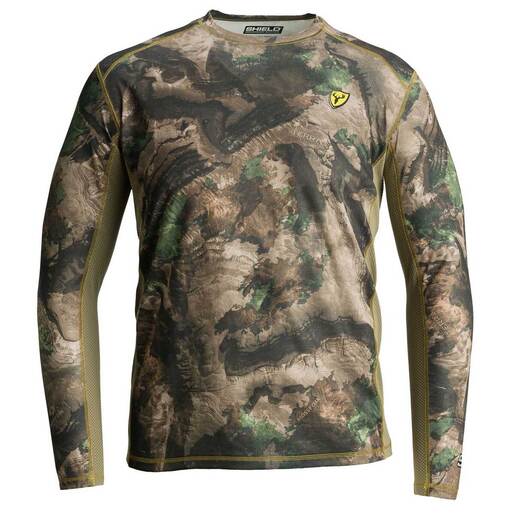 Blocker Outdoors Men's Mossy Oak Elements Terra Angatec Long Sleeve Hunting Shirt - The Angatec performance long-sleeve tee is designed to keep you cool when the heat sets in. Inspired by athletic gear, the Angatec fabric is lightweight and moisture-wicking while maintaining the durability you need in spring and early fall hunts. Blocker's premium S3 technology prevents odors before they form while helping you get right into the action. Feather-light, moisture-wicking, breathable polyester S3 anti-microbial finish prevents odors Mesh underarm construction keeps you cool at the moment of truth Smooth collar lays flat and layers comfortably Flatlock seams for comfort Your warm-to-hot weather hunting solution Style: 1055813