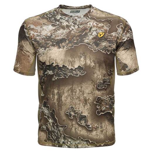 Blocker Outdoors Men's Real Tree Excape Agnatec Short-Sleeve Hunting Shirt - The Angatec performance short sleeve tee is designed to keep you cool when the heat sets in. Inspired by athletic gear, the Angatec fabric is lightweight and moisture wicking while maintaining the durability you need in spring and early fall hunts. Blocker's premium S3 technology prevents odors before they form while helping you get right into the action. Feather-light, moisture wicking, breathable polyester S3 anti-microbial finish prevents odors Mesh underarm construction keeps you cool at the moment of truth Smooth collar lays flat and layers comfortably Flatlock seams for comfort Your warm-to-hot weather hunting solution Style: 1055814