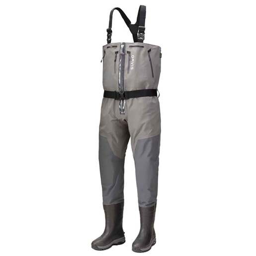 Orvis Men's PRO Zip Bootfoot Fishing Waders - Trust PRO Zip Bootfoot Waders to take you from the bank to waist-high waters on your next fishing adventure. Twice as much abrasion-resistance as comparable waders and with nearly 2x the puncture-resistance Exclusive 100% CORDURA fabric design with four layers in the upper and five layers in the lower Best-in-class wet rubber traction from exclusive, studdable Michelin outsole TIZIP MasterSeal waterproof zipper for easy on-and-off Warm, 5mm neoprene and grid-fleece insulation in boot Split, fleece-lined handwarmer pockets, two external storage pockets with YKK AquaGuard coated zippers, and split Hypalon daisy chain for tool docking Adjustable elastic suspenders with opposing buckles for waist-high conversion Removable OrthoLite X25 knee pads Cushioning Bloom technology outsole/midsole which replaces petroleum-based foam with an algae-based formula and actually offsets 50 gallons of water waste per pair Athletic Fit Nylon shell with polyurethane membrane Nylon tricot liner Boots fit true to size Style: 2ZM7