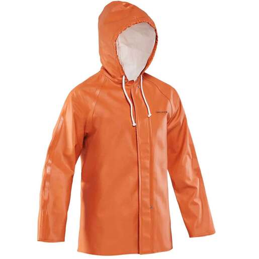 Grundens Youth Clipper 282 Sport Fishing Rain Jacket - Keep the young fisher in your family covered and well protected with the youth Clipper Jacket. Made from mid-weight PVC-coated polyester/cotton material for 100% waterproof protection with easy movement even in cold temperatures. PU coated polyester 100% waterproof Adjustable hood Active fit Style: 10050