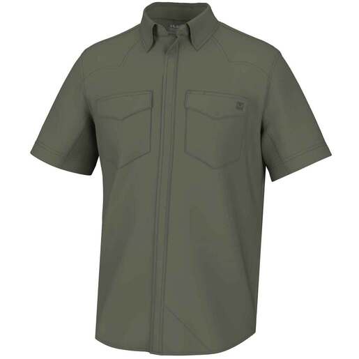 Huk Men's Diamond Back Button Down Short-Sleeve Fishing Shirt - Elevate your fishing experience with Huk's Diamond back shirt that boasts a stylish aesthetic for fashion-forward anglers. 85% nylon/15% spandex UPF 50+ Ultra-lightweight Vented back Interior eye wipe Snap closures Moisture transport Style: H1500181